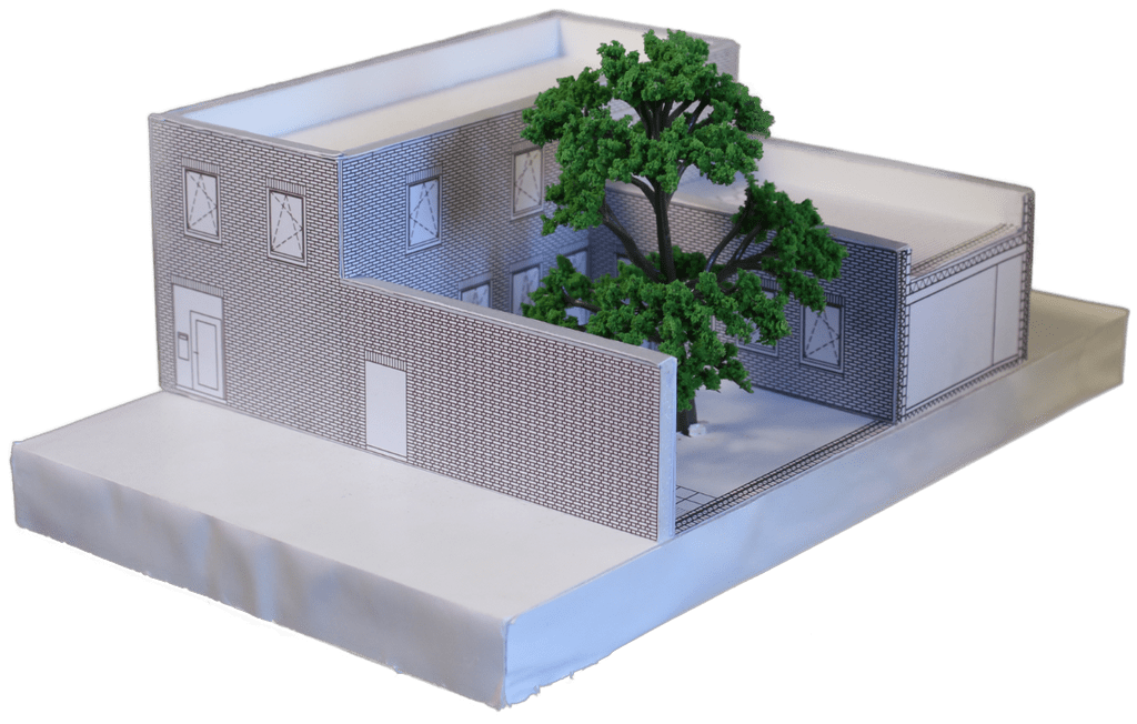Ein in Reihe zu bauendes Hofhaus, konzipiert für das Familienleben, gebaut auf ein Grundstück von 15x15m, welches durch klare Strukturen hervorsticht.